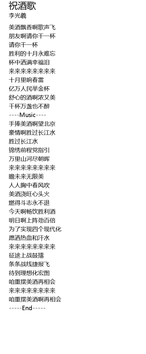 | [01:45.03] | 今天啊畅饮胜利酒 |
