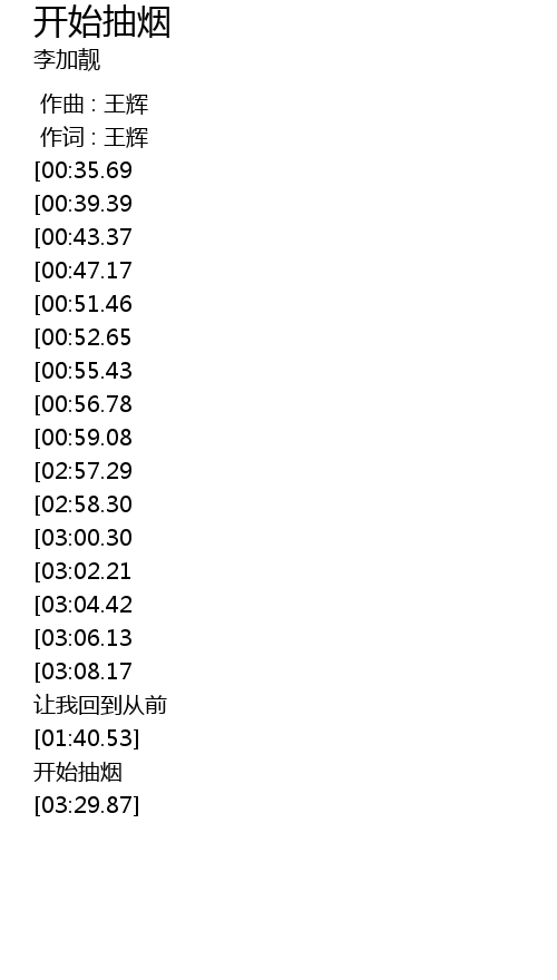 | [03:12.90][02:57.29][02:41.34][02:24.83][01:23.05][01:06.27] | 我已开始抽烟 |