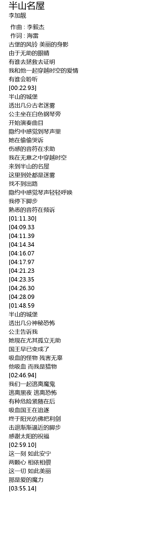 | [04:33.51][04:09.33][01:24.46] | 半山 城堡 |