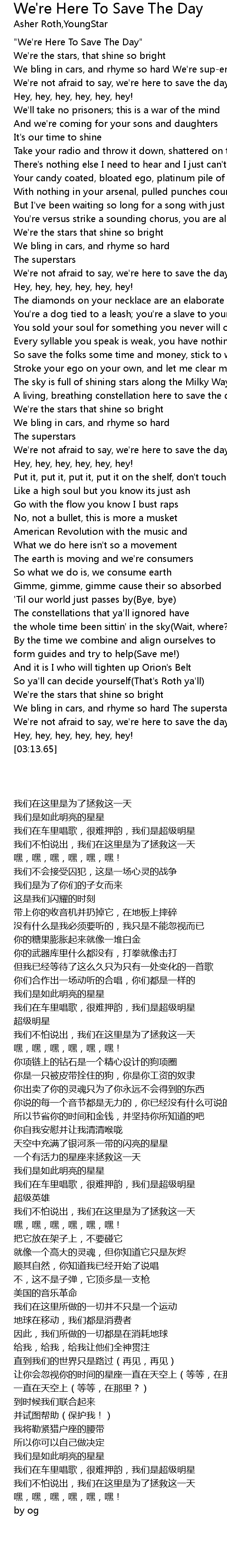 | [00:00.00] | "We're Here To Save The Day" |