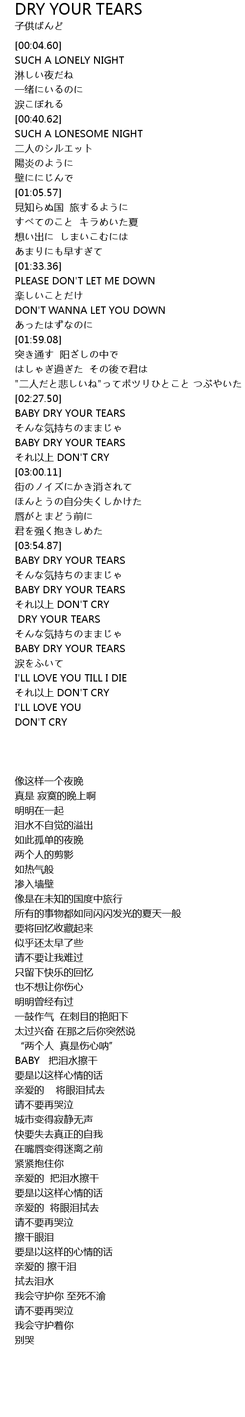| [02:48.64] | BABY DRY YOUR TEARS |