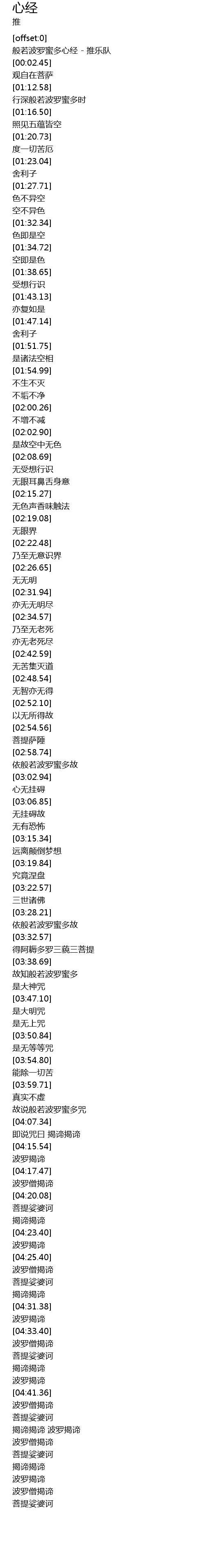 | [00:00.56] | 般若波罗蜜多心经 - 推乐队 |