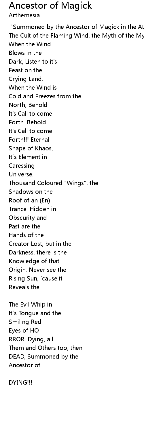 Ancestor of Magick Lyrics