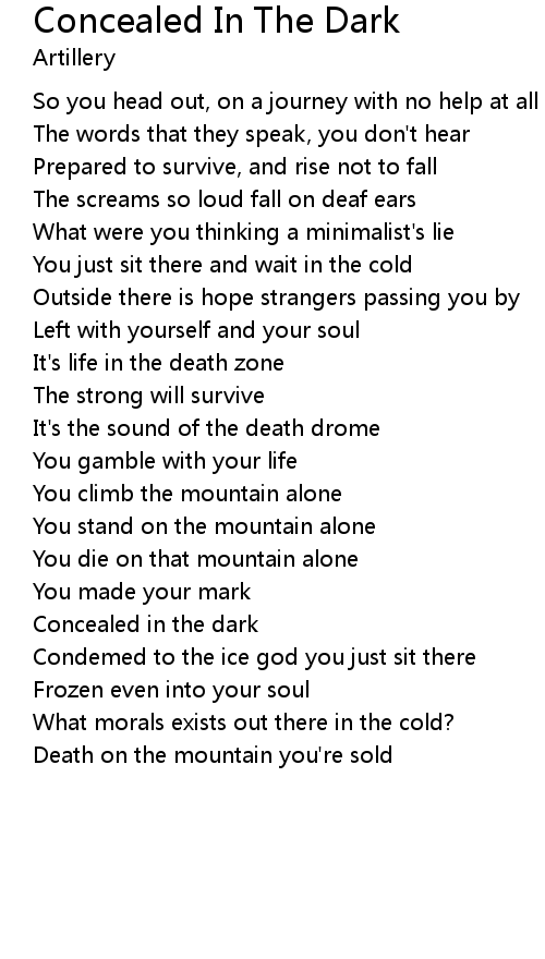 | Concealed in the dark | |