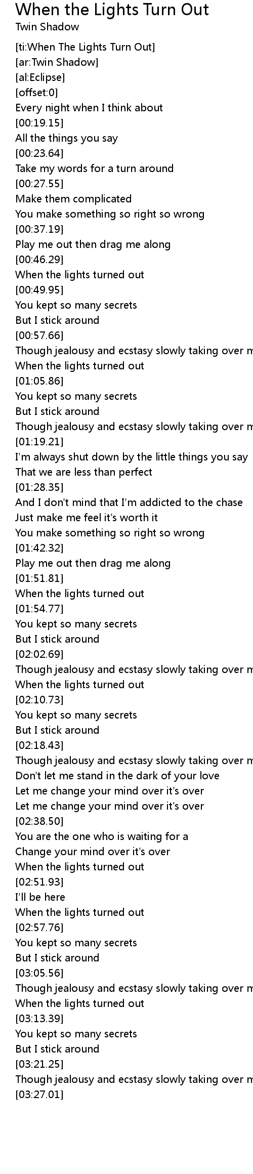 [ti:When The Lights Turn Out] |