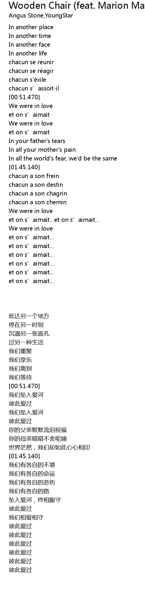 | Song | Wooden Chair (feat. Marion Mayer) [Duo Version] |