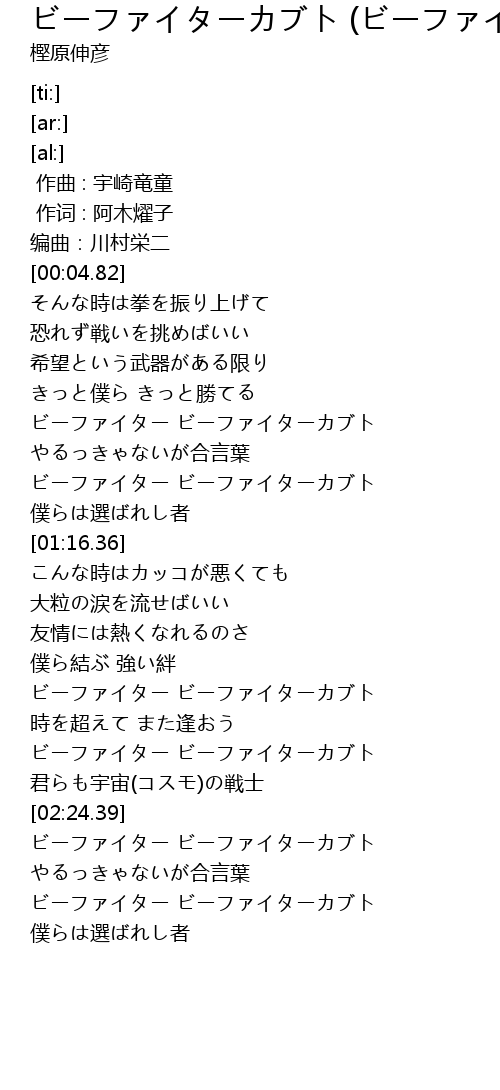 | [02:38.62] | ビーファイター ビーファイターカブト |