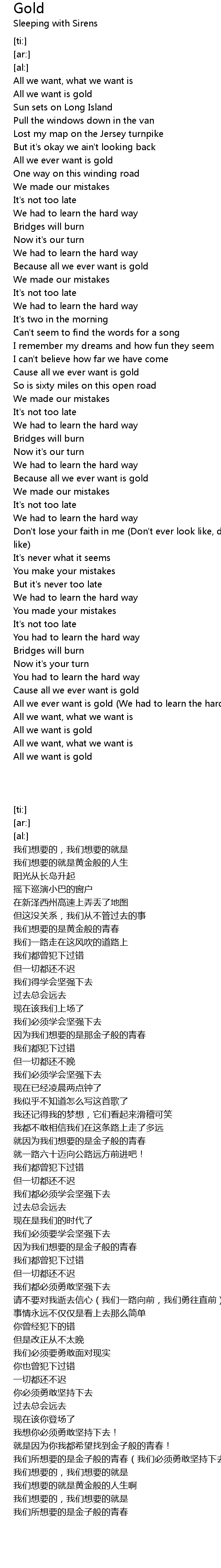 All we ever want is gold (We had to learn the hard way) |