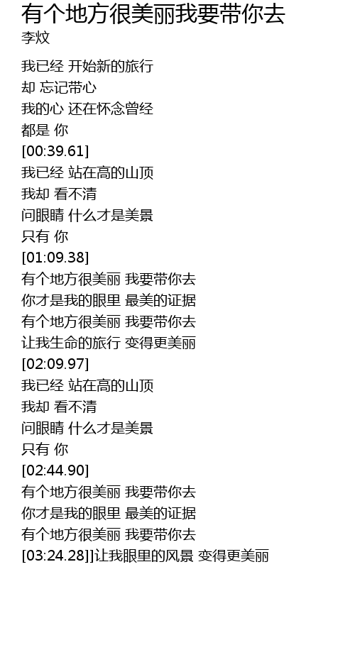 | [03:14.23] | 有个地方很美丽 我要带你去 |