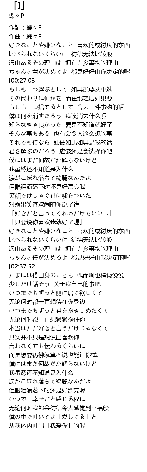 | [00:00.00] | 作詞:蝶々P |