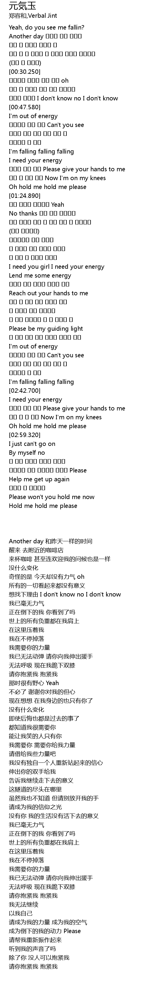 | [03:09.780] | 무너지는 내게 에너지가 되어줘 Please |
