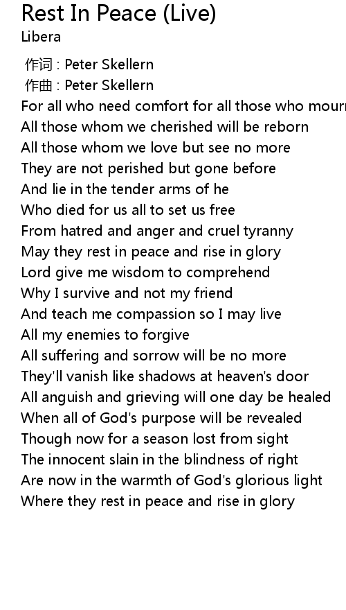 | [01:01.24] | May they rest in peace and rise in glory |