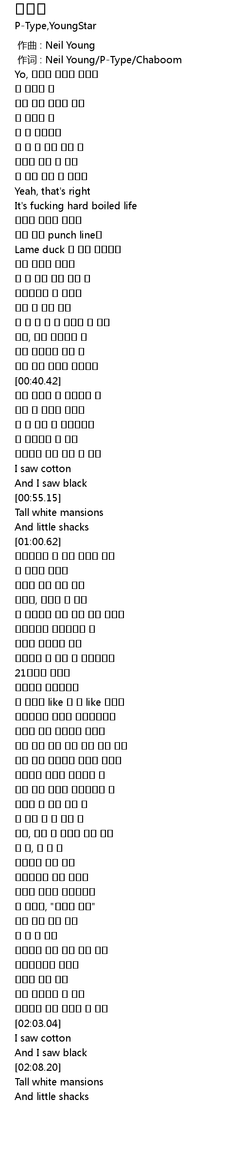 | [00:01.00] | 作词 : Neil Young/P-Type/Chaboom |