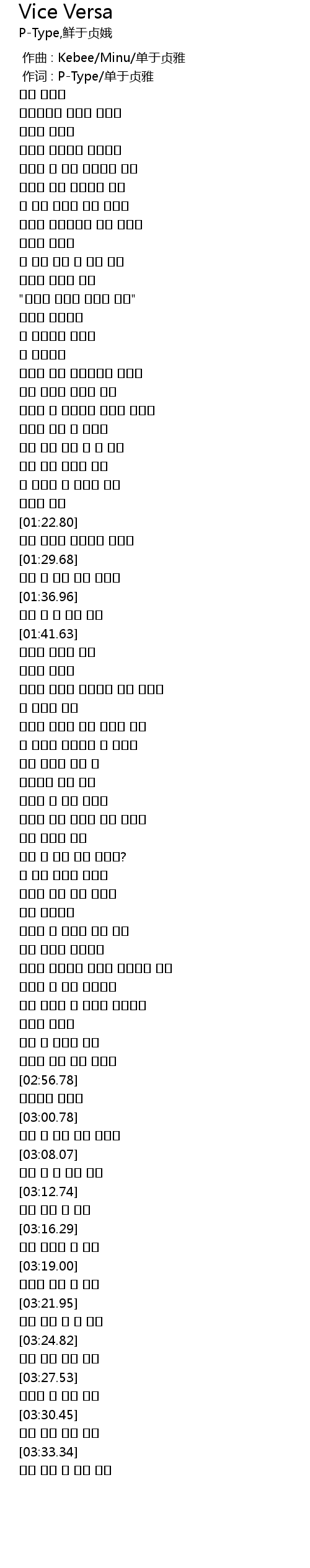 | [00:01.00] | 作词 : P-Type/单于贞雅 |