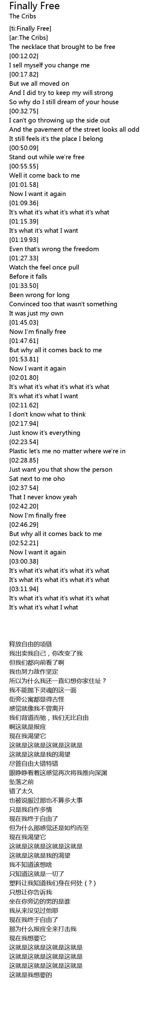 [ti:Finally Free] |