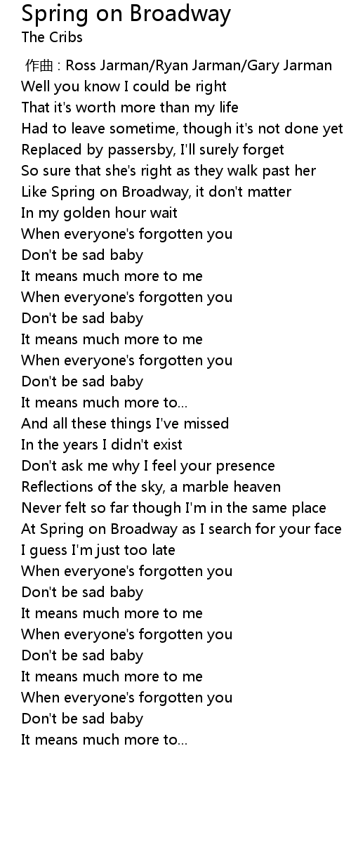 | [01:01.30] | Like Spring on Broadway, it don' t matter |