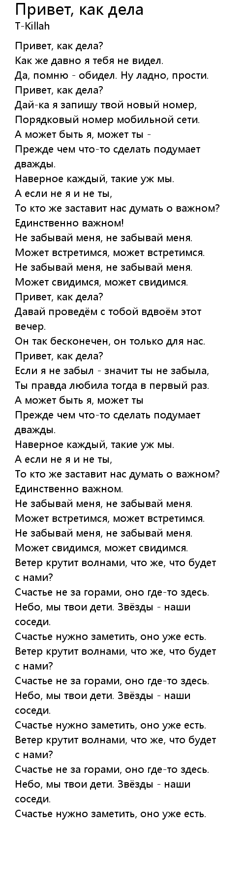 Привет, как дела , Lyrics