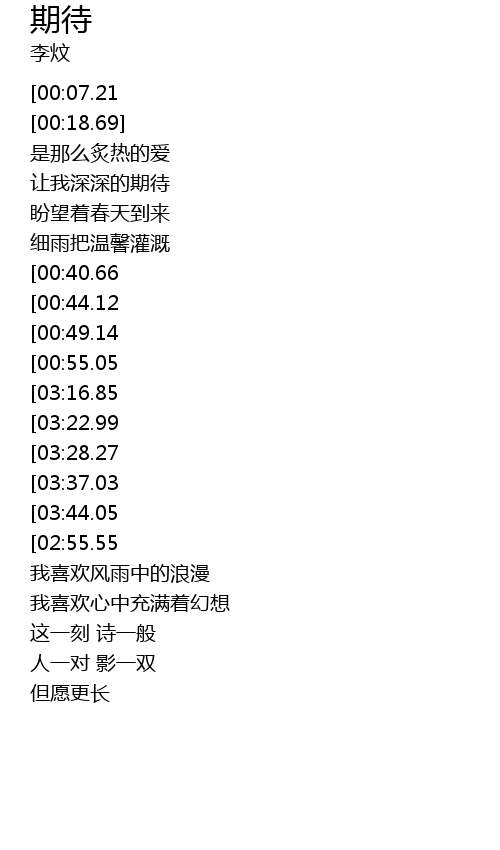 | [01:53.20][00:44.12] | 让我一生的期待 |