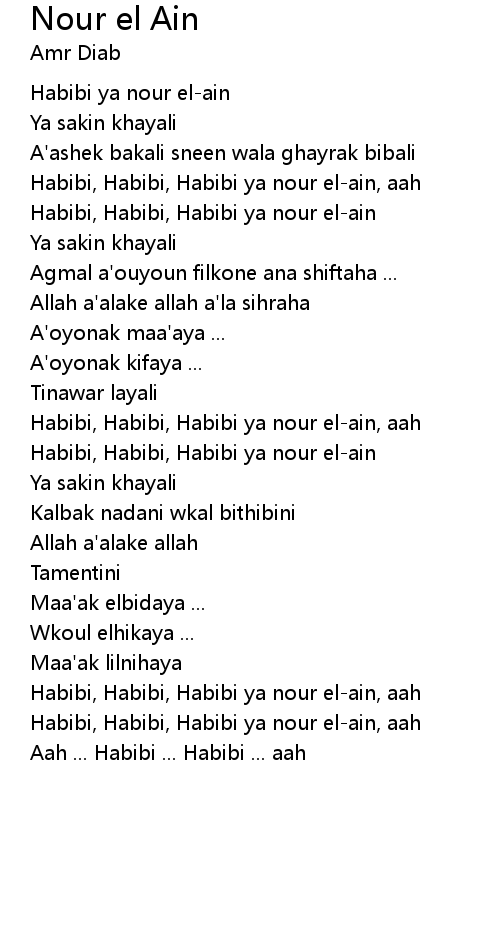 Habibi, Habibi, Habibi ya nour el-ain, aah |