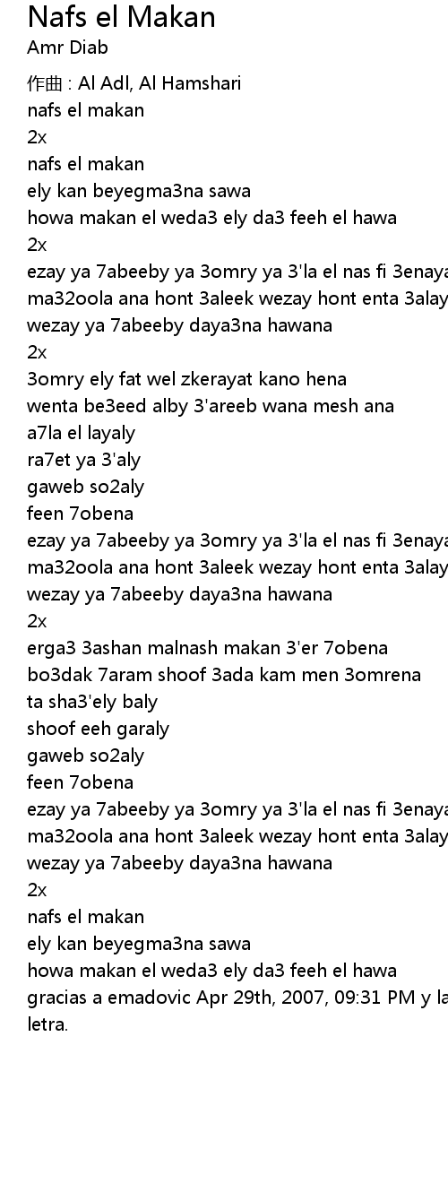 | Song | Nafs el Makan |