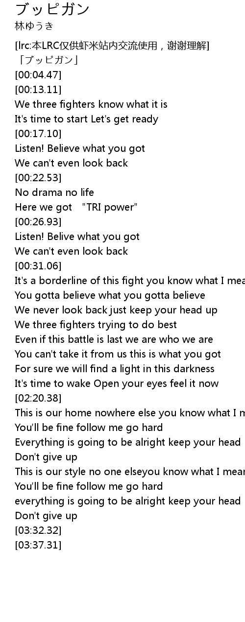 | [02:17.57] | It' s time to wake Open your eyes feel it now |