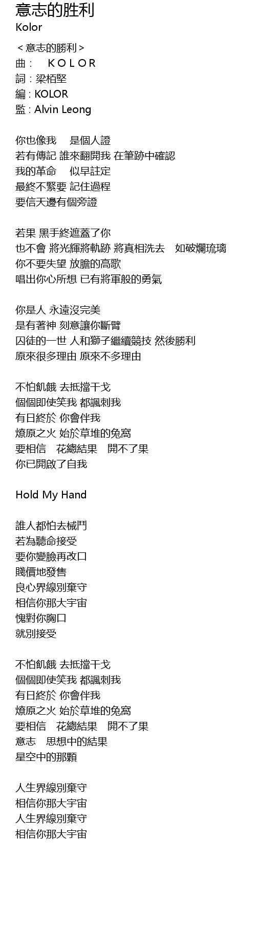| [02:14.85] | Hold My Hand |