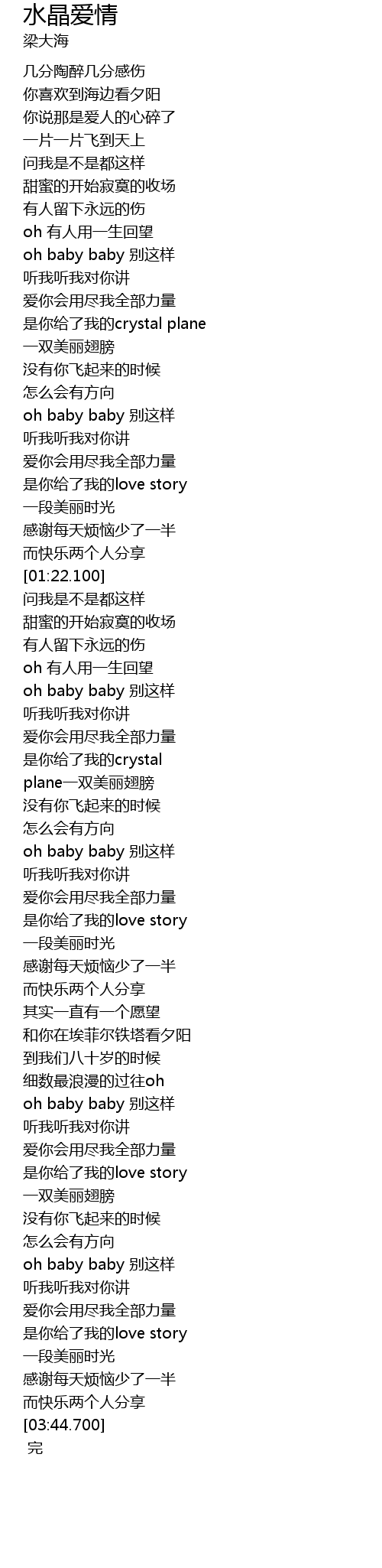 | [01:56.220] | oh baby baby bié zhè yàng |