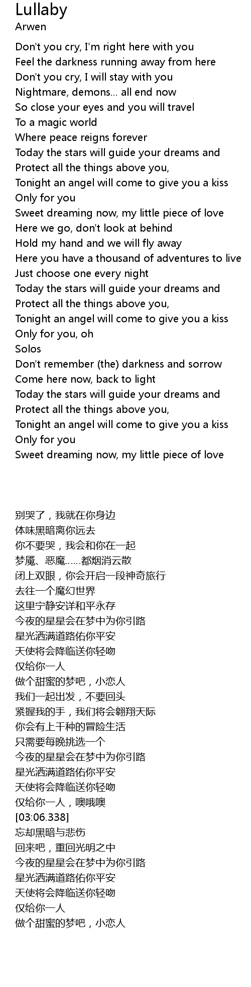 | [04:21.041] | Sweet dreaming now, my little piece of love |