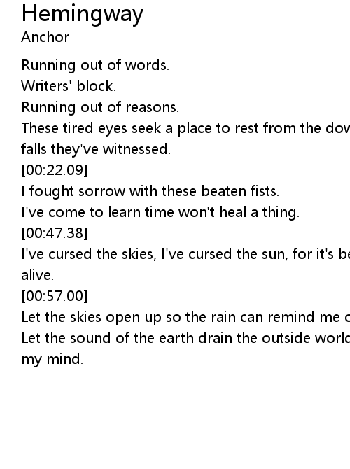 | [00:35.59] | I've come to learn time won't heal a thing. |
