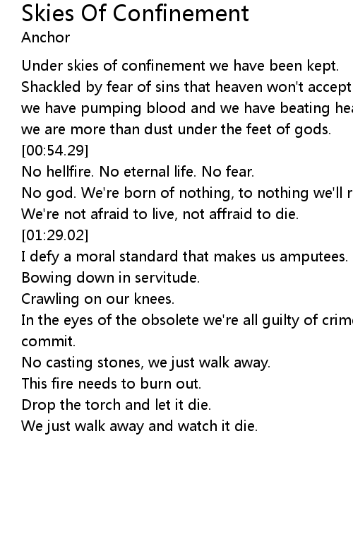 | [00:34.51] | Under skies of confinement we have been kept. |