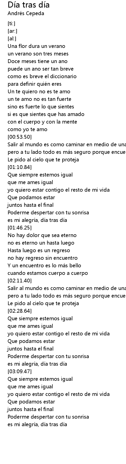 | [03:35.87] | es mi alegrí a, dí a tras dí a |