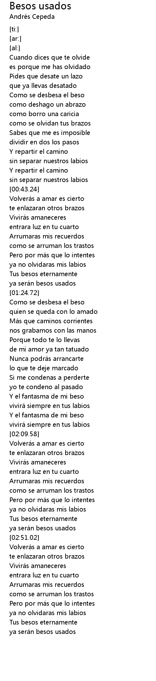 | [03:30.87] | ya sera n besos usados |