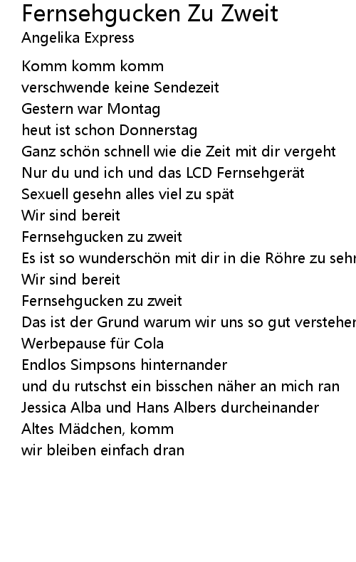 | Es ist so wunderschön mit dir in die Röhre zu sehn | |