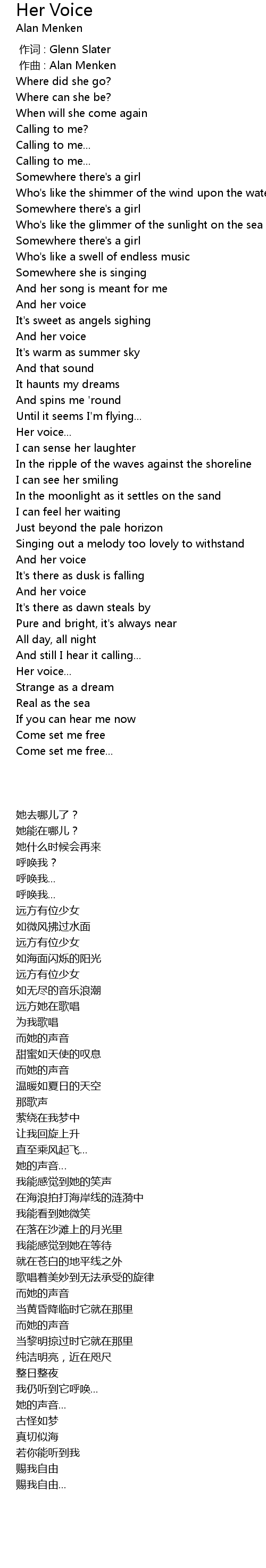 | [00:01.000] | 作曲 : Alan Menken |