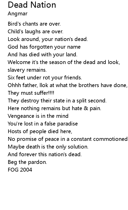 And forever this nation's dead. |
