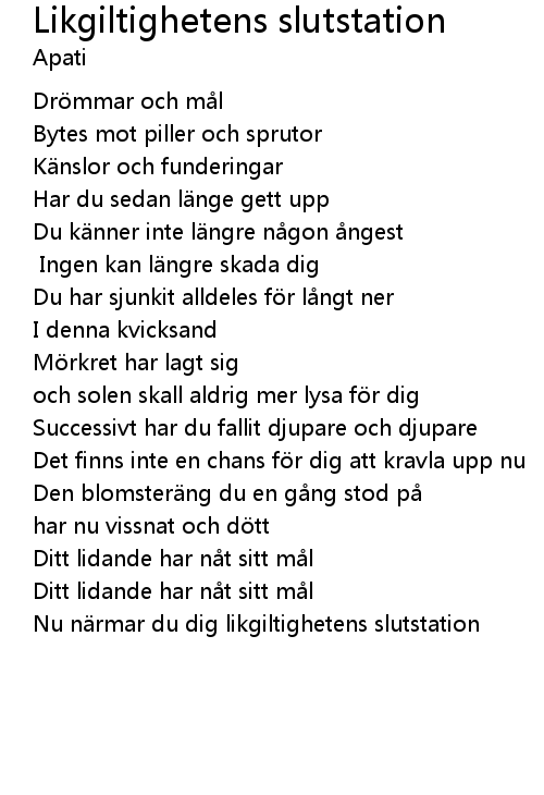| [04:09.000] | Nu närmar du dig likgiltighetens slutstation |