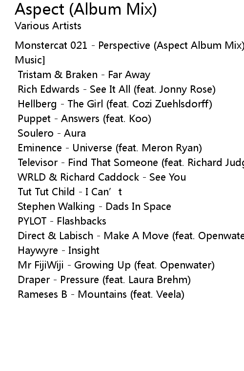 | [00:00.00]Monstercat 021 - Perspective (Aspect Album Mix) [1 Hour of Electronic Music] | |