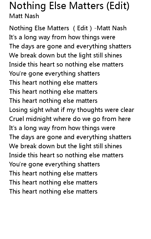| [00:00.303] | Nothing Else Matters Edit Matt Nash |