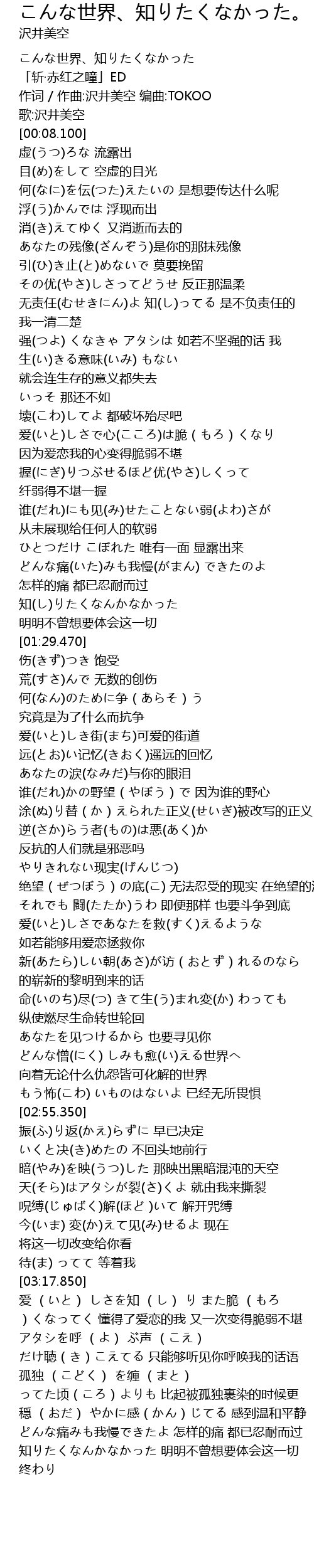 | [00:13.400] | 目(め)をして 空虚的目光 |