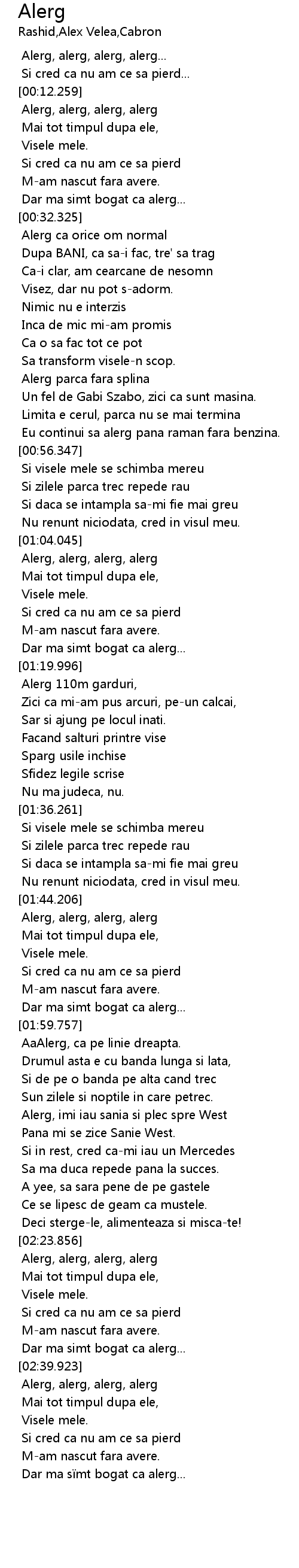 | [02:40.193] | Alerg, alerg, alerg, alerg |