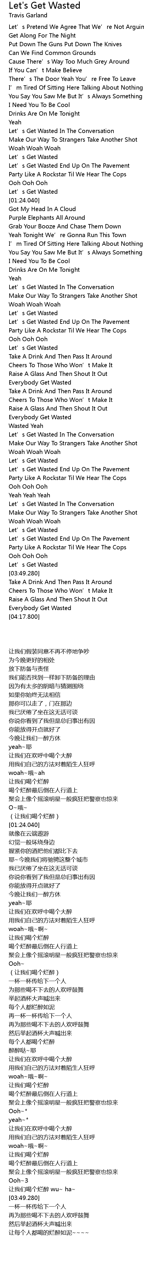 | [03:04.410] | Let' s Get Wasted |