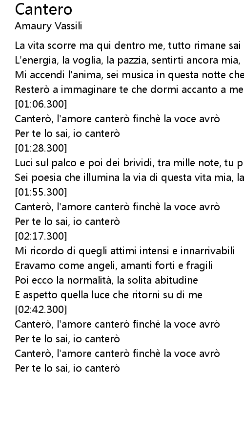 | [03:02.400] | Cantero, l' amore cantero finche la voce avro |