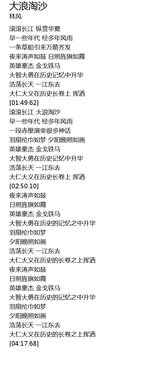 | [01:50.67] | gǔn gǔn cháng jiāng dà làng táo shā |
