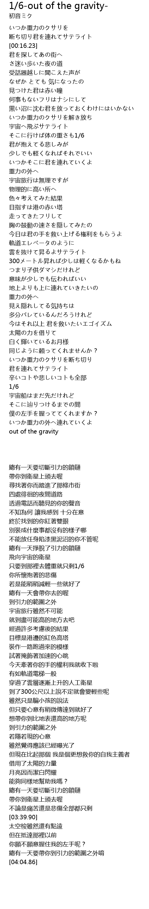 | [01:08.47] | そこに行けば体の重さも1/6 |