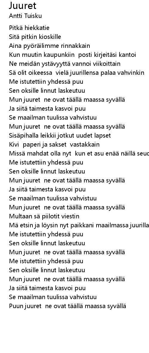 | [03:45.23] | Puun juuret ne ovat t ll maassa syv ll |