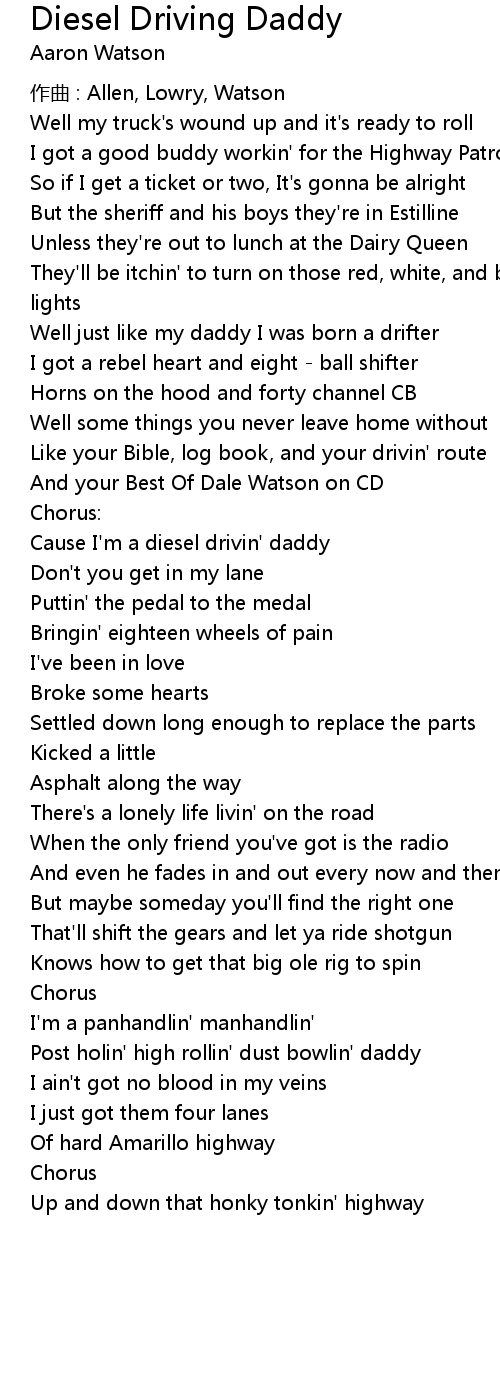 | Cause I'm a diesel drivin' daddy | |