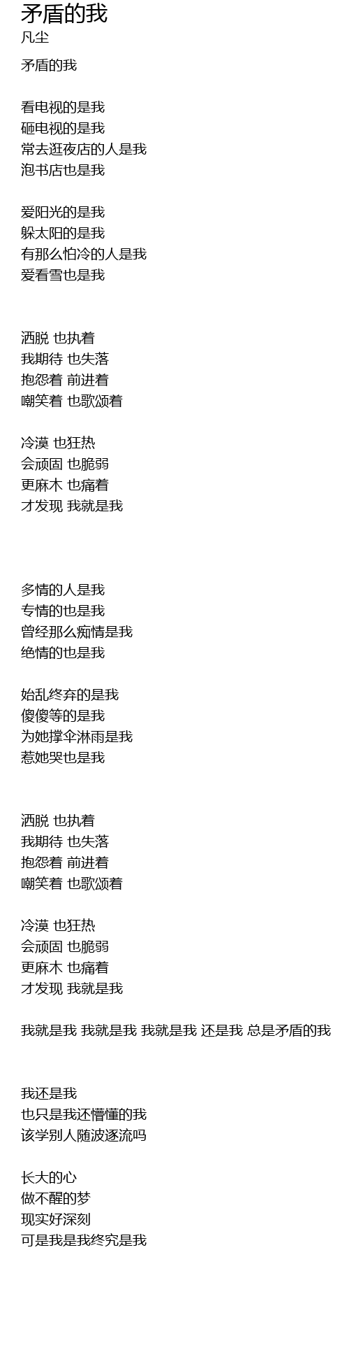 | 我就是我 我就是我 我就是我 还是我 总是矛盾的我 | |
