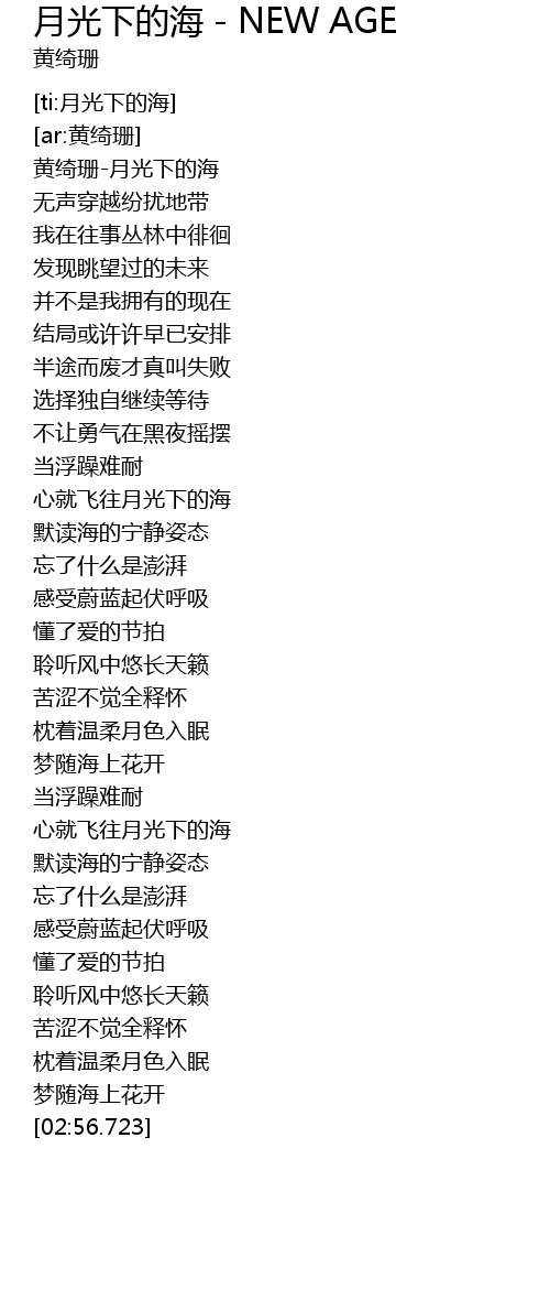 | [00:04.916] | huáng qǐ shān yuè guāng xià de hǎi |