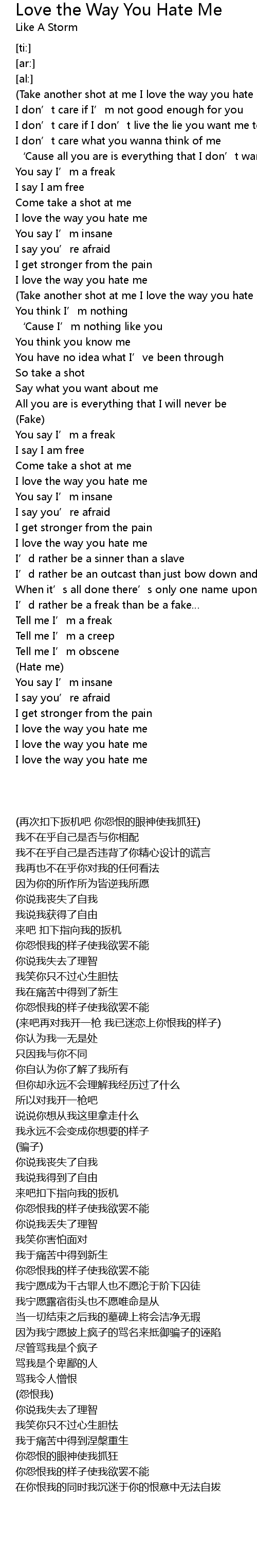 | [00:06.38] | (Take another shot at me I love the way you hate me) |