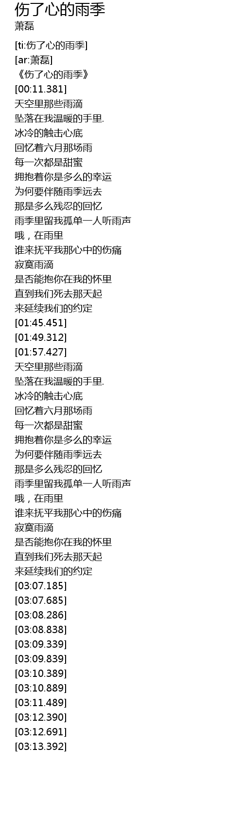 | [02:30.833] | 雨季里留我孤单一人听雨声 |